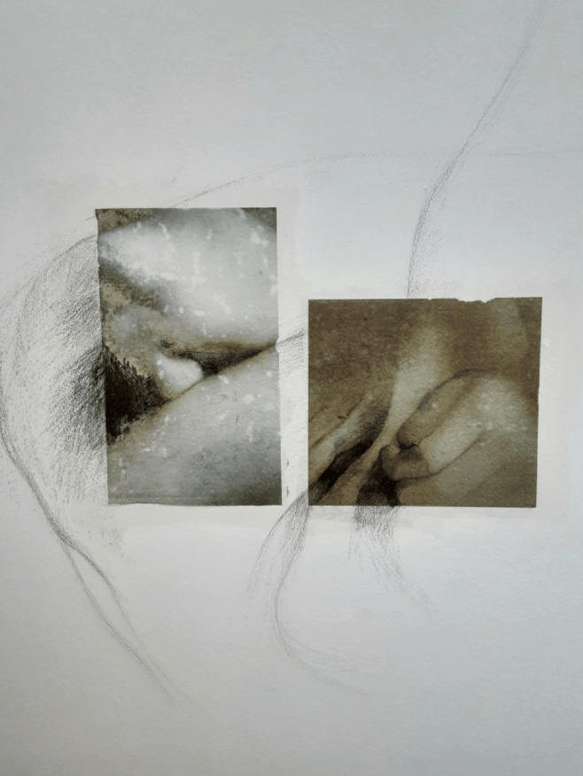 Dezelfde lijn wordt doorgetrokken in haar tekeningen – schilderijen en sinds 2025 fotografie. Ze zijn het verhaal van een individu: ze geeft haar verbeelding de vrije loop en bouwt het werk op tot een abstract geometrisch -of figuratief beeld.
