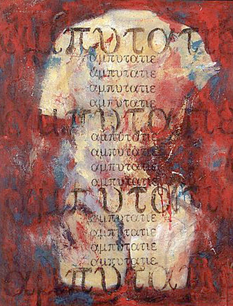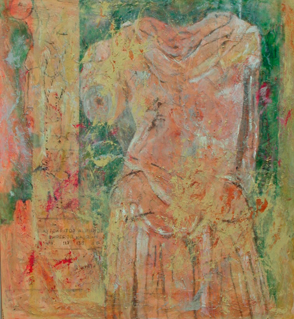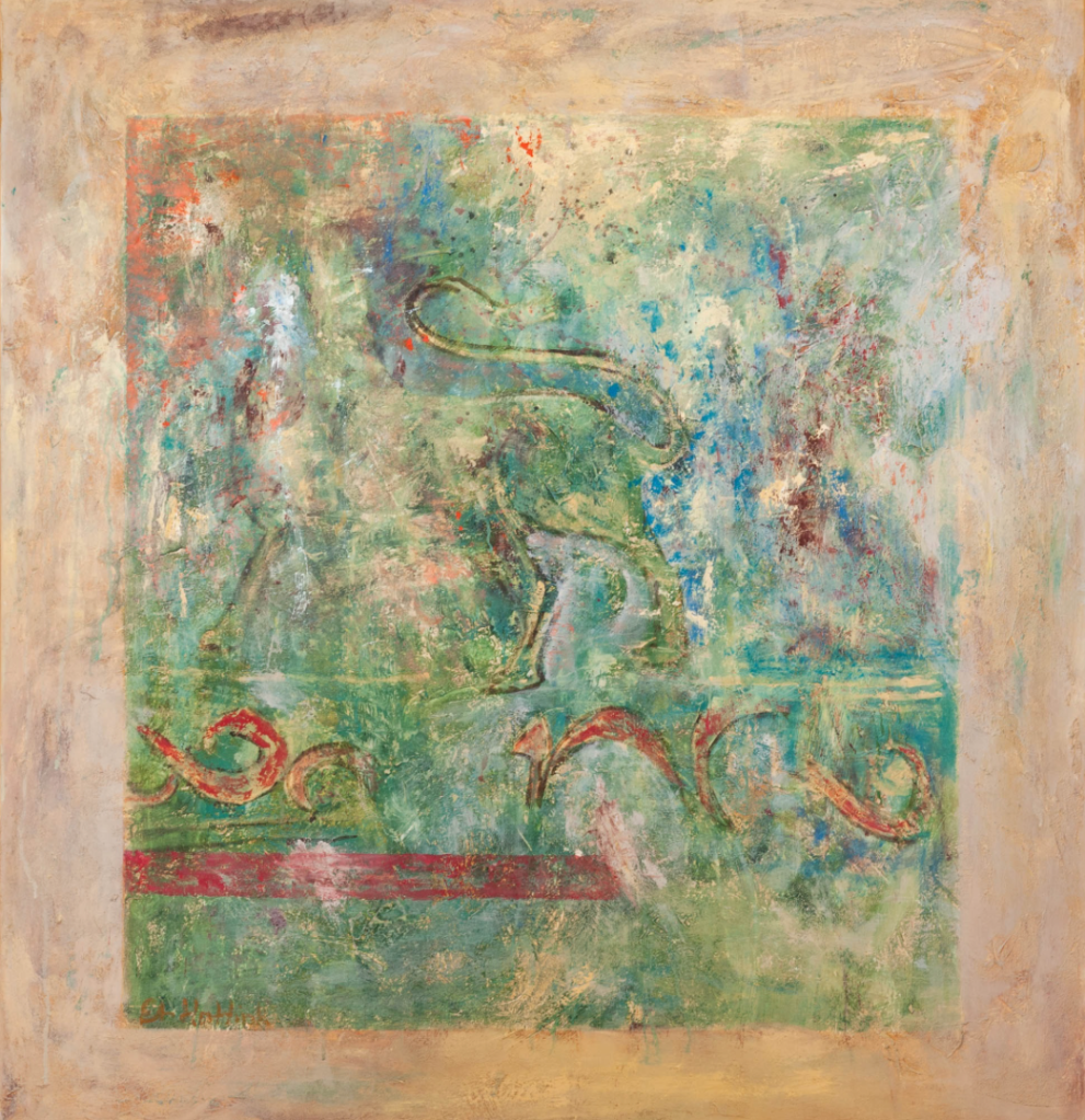 Haar uitgangspunt van een frescoachtige ondergrond blijft dezelfde, maar de thema’s boeien steeds weer.