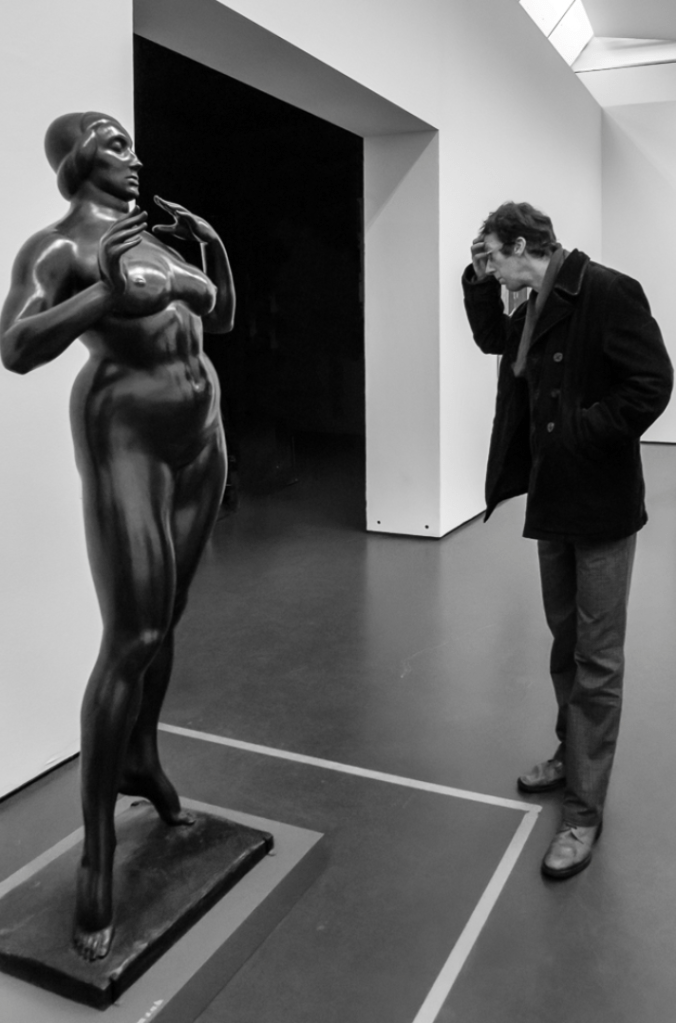 In het museum wordt haar aandacht niet alleen getrokken door de werken die zij zelf bezoekt, maar ook de kijkers en de manier waarop de museumbezoekers naar de werken kijken!