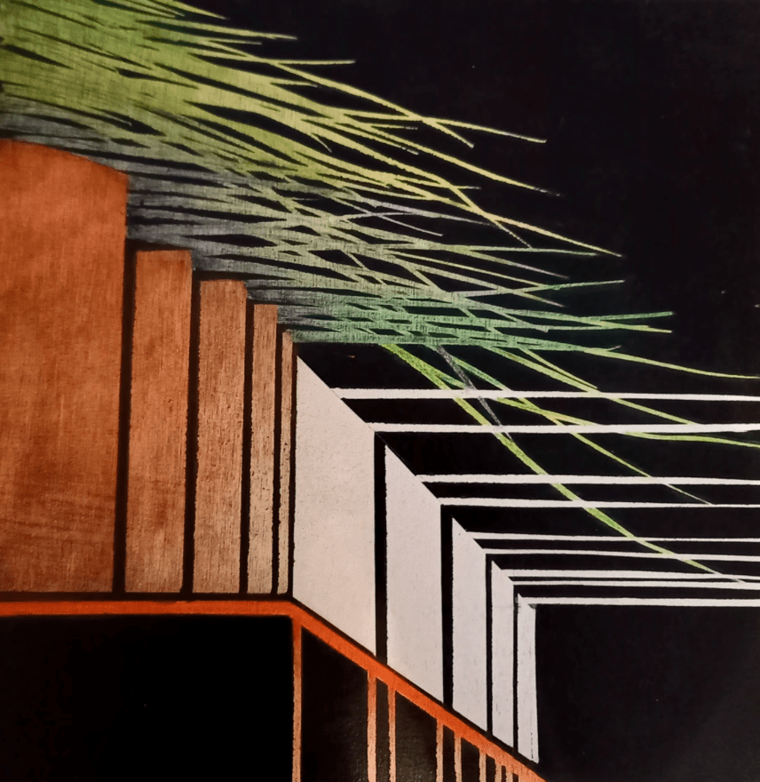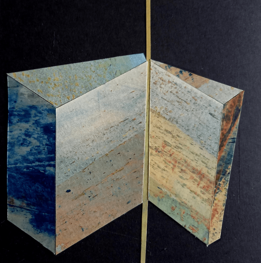 Spelen met lijnen en vlakken, de vanzelfsprekendheid trachten te negeren en suggestie prikkelen zijn aspecten die het creëren van een werk zo boeiend maken.